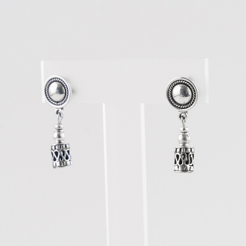 Los Aretes Aroma, de la exclusiva Colección Aroma, son una obra maestra en plata quemada 925, diseñados para destacar la elegancia en su forma más pura. Su diseño único, que mezcla formas clásicas con detalles modernos, presenta una estructura en forma de cilindro calado, que evoca un estilo delicadamente artesanal. Los aretes combinan el brillo sutil de la plata envejecida con detalles minuciosos que le dan un aire de sofisticación atemporal.