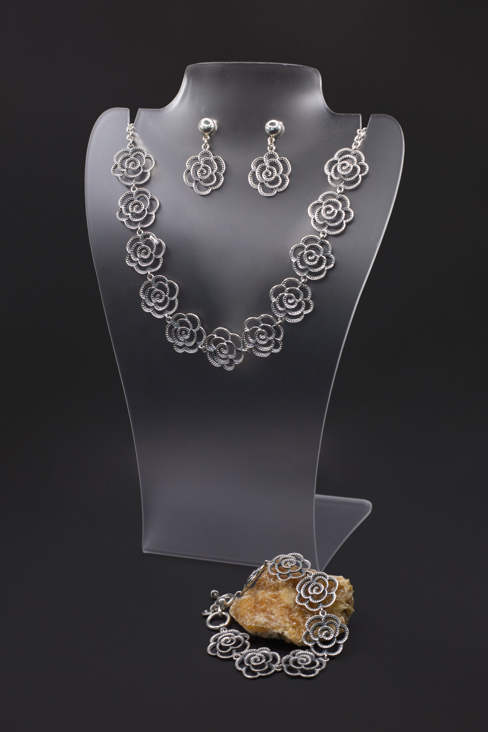 JUEGO COMPLETO ELABORADO EN PLATA QUEMADA INSPIRDO EN LA VARIEDAD DE FLORES