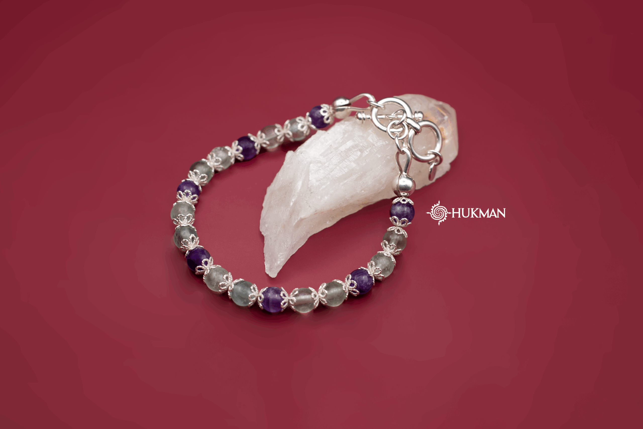 PULSERA HECHA A MANO EN PLATA 925, AMATISTA Y FLORANITA